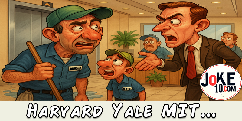 #Funny Jokes #Corny Jokes #Janitor Humor #Harvard Yale MIT Jokes #Twist Ending #Workplace Jokes #Snappy Comeback